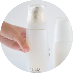 輝きがにじみ出すような明るい艶を宿したシルクスキンへ導くエイジングケア*3化粧水。*3 年齢に応じたうるおい、ハリのお手入れのこと