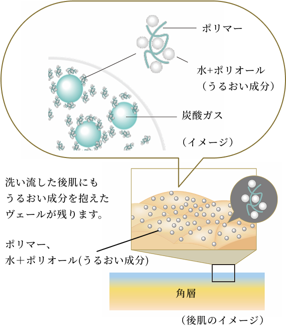 マイクロサイズの炭酸泡*2がすっきり落とし、なめらかに。*2 炭酸ガス(噴射材)
