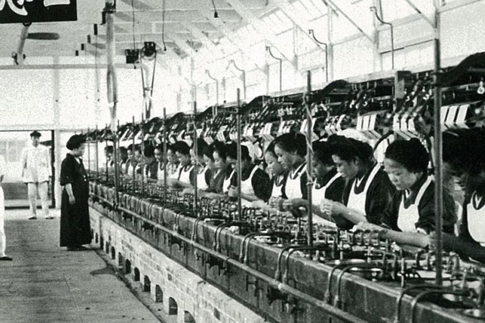 紡績業を前身とする鐘紡。当時、工場で絹糸を紡ぐ女性の手指は生糸のように美しかったという事実がありました。