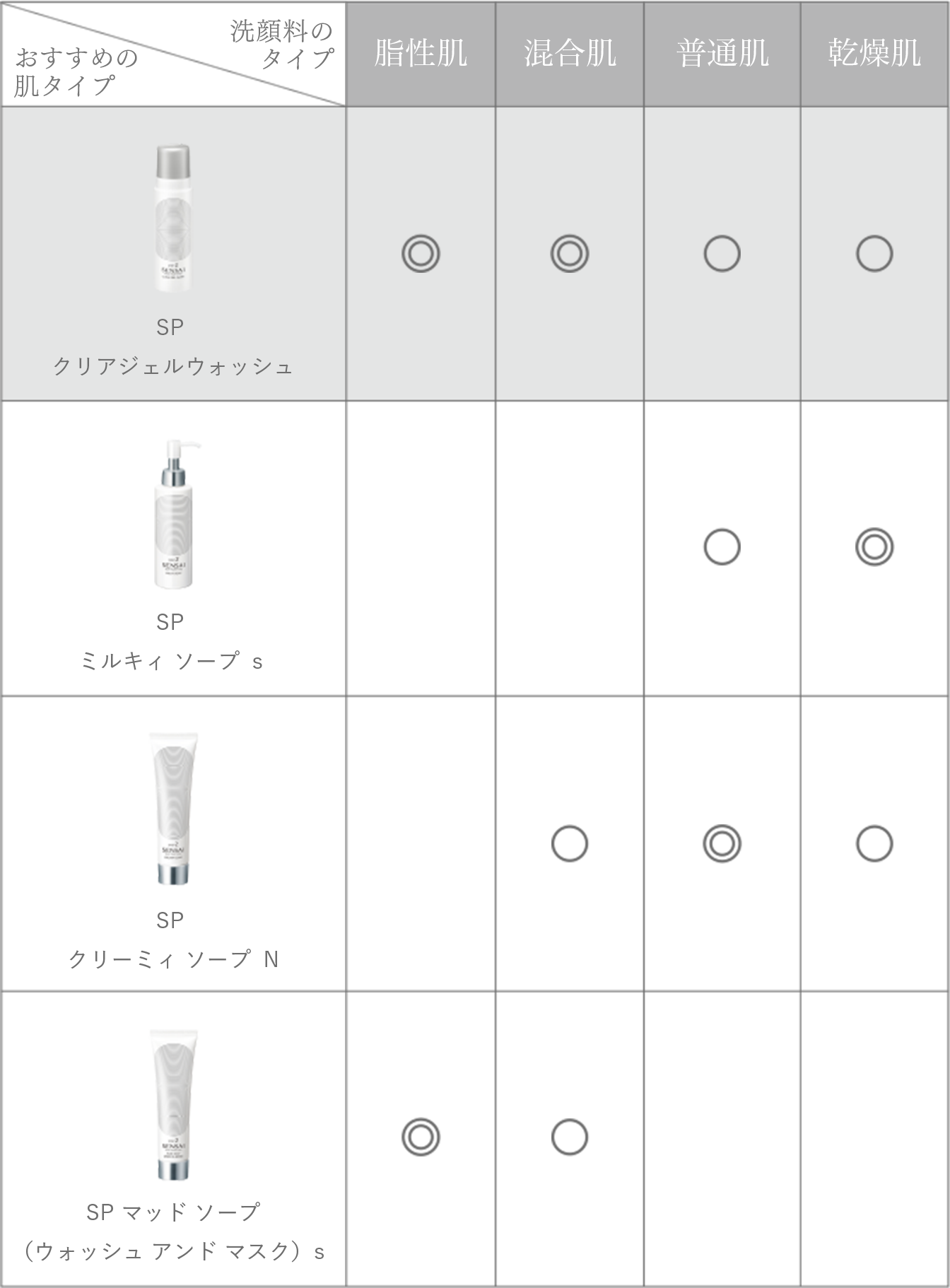※上記SPシリーズの洗顔料は全ての肌タイプの方にご使用いただけます。