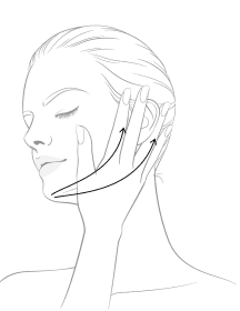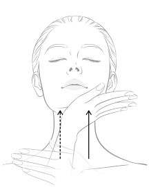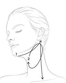あご下→フェイスライン→耳下腺→首側面を鎖骨のくぼみまでなでおろします。(左右それぞれ2〜3セット)