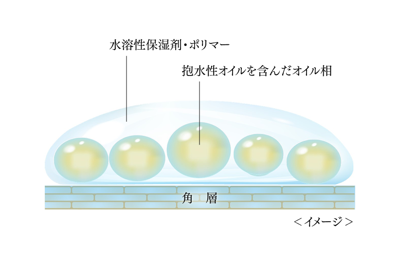 水を抱え込みやすいオイルと水溶性ポリマーが、きゅっと引き締まる感触を実現。